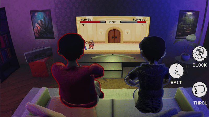 A chaotic local 1v1 fighting game that blends 2D retro combat with 3D real world mischief where on-screen battles spill into your living room.